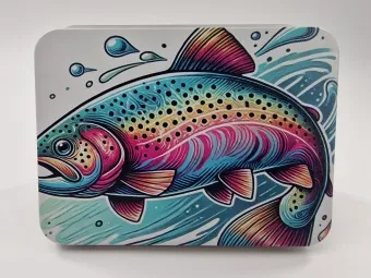 Lijst met producten overslaanMetal Fly Box D Afmetingen 11,5 x 8,5 x 2 cm Silicone insert Plaats voor 88 vliegen Licht in gewicht 85 gram !
