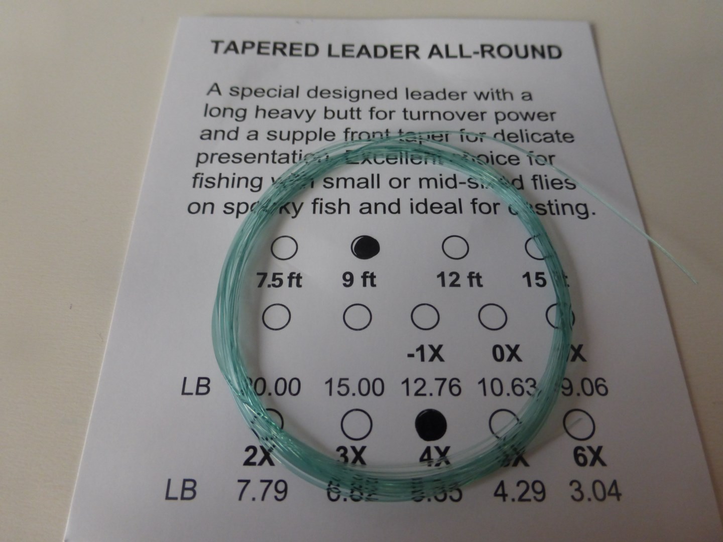 Een professionele tapered leader die garant staat voor een optimale energieoverdracht en een natuurlijke presentatie van de vlieg.