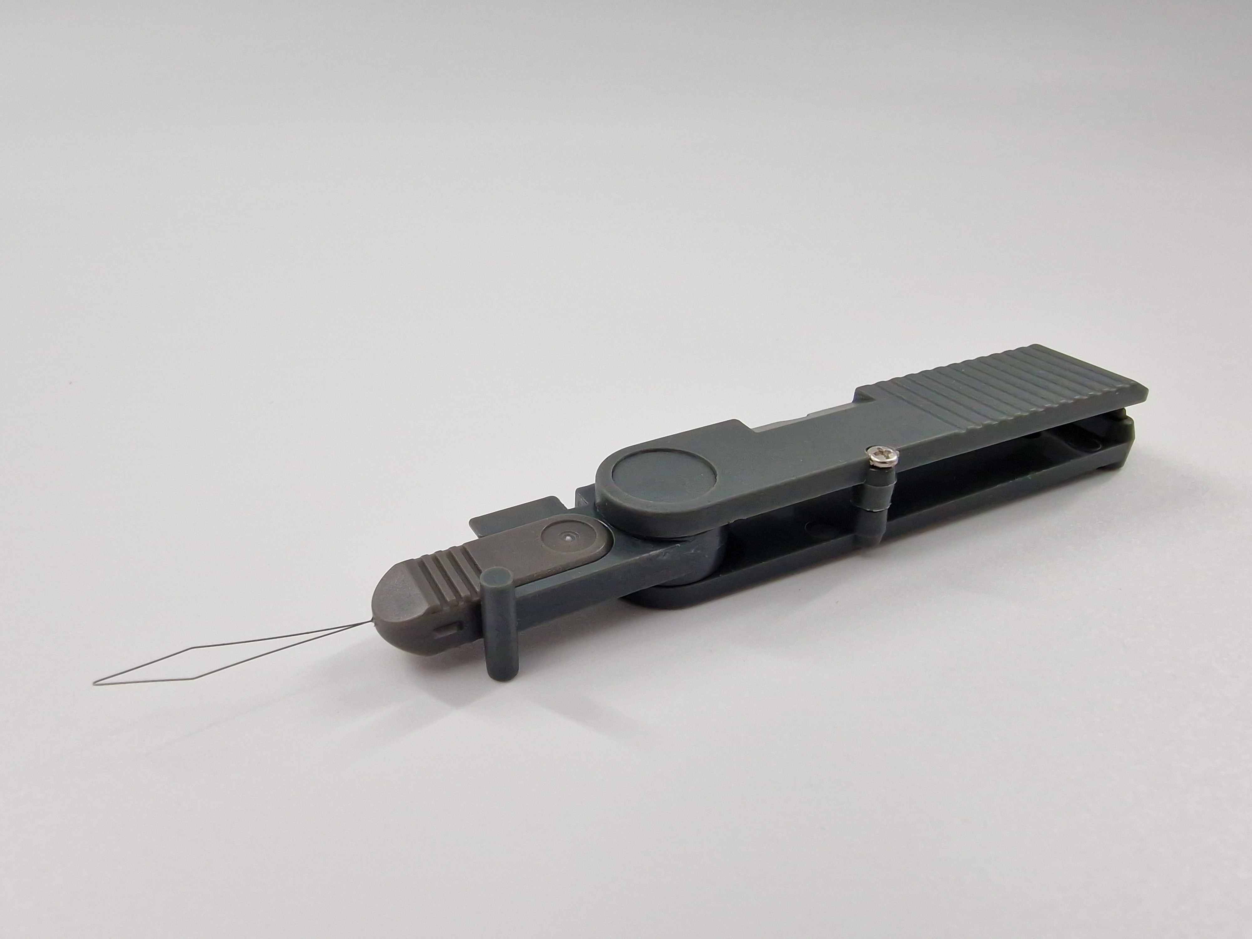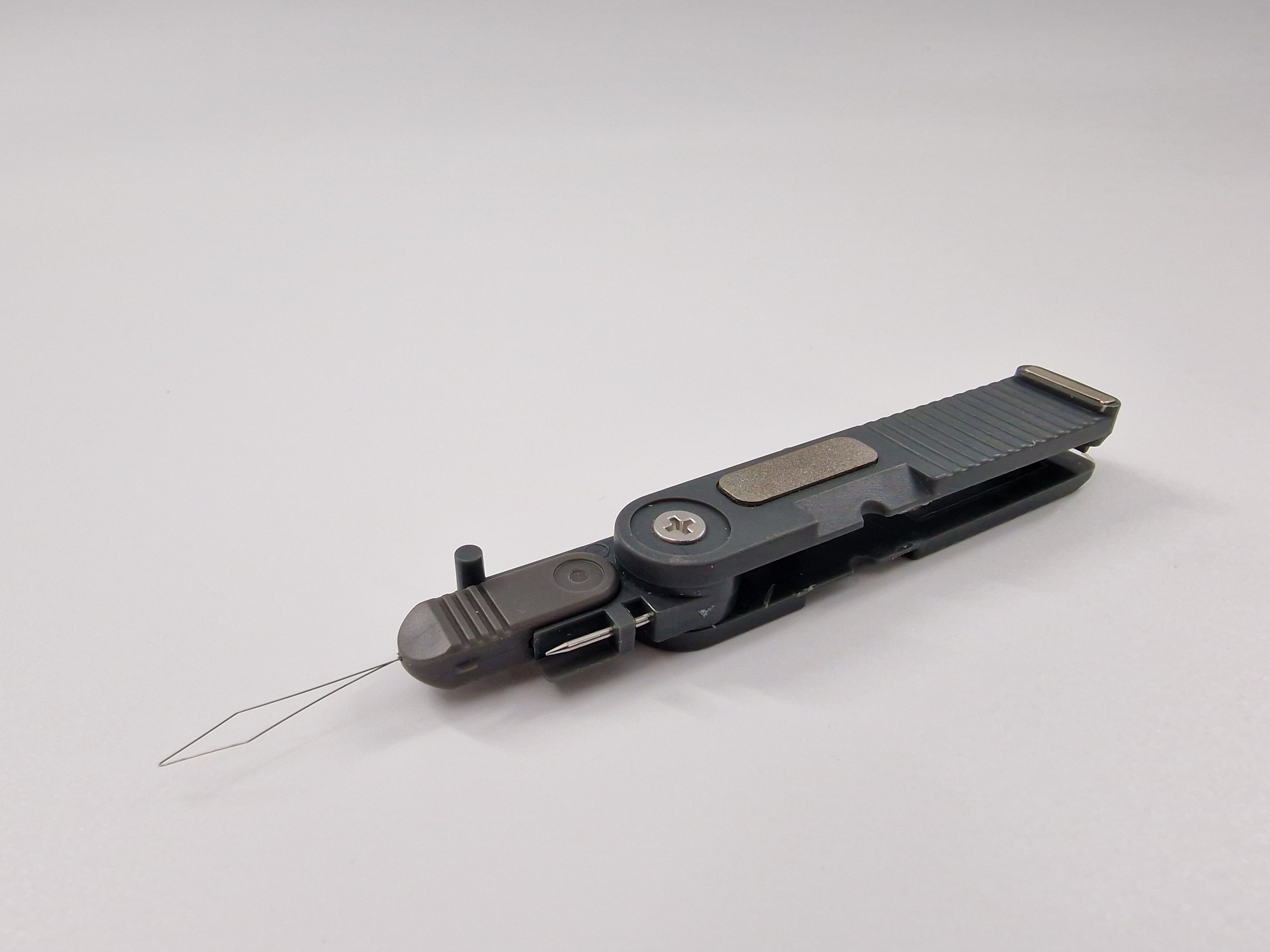 Der Hakeneinfädler erleichtert das Einfädeln der Angelschnur durch das Öhr des Hakens. Diese Funktion ist besonders nützlich bei schlechten Lichtverhältnissen, eingeschränkter Sehkraft oder bei eingeschränkter Feinmotorik, z. B. bei Kälte oder zittrigen Händen.