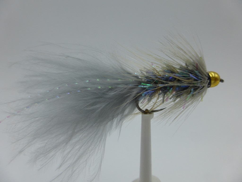 Size 10 Crystal Bugger Grey Bead Head Barbless