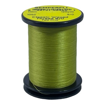 Classic Waxed Thread 8/0 110m (120 Yards) maakt deel uit van het Semperfli-assortiment 8/0 (105 denier) Classic Waxed Threads (CWT). Deze hoogwaardige, gewaxte binddraad is speciaal ontwikkeld voor het vliegbinden en is uitermate geschikt voor: